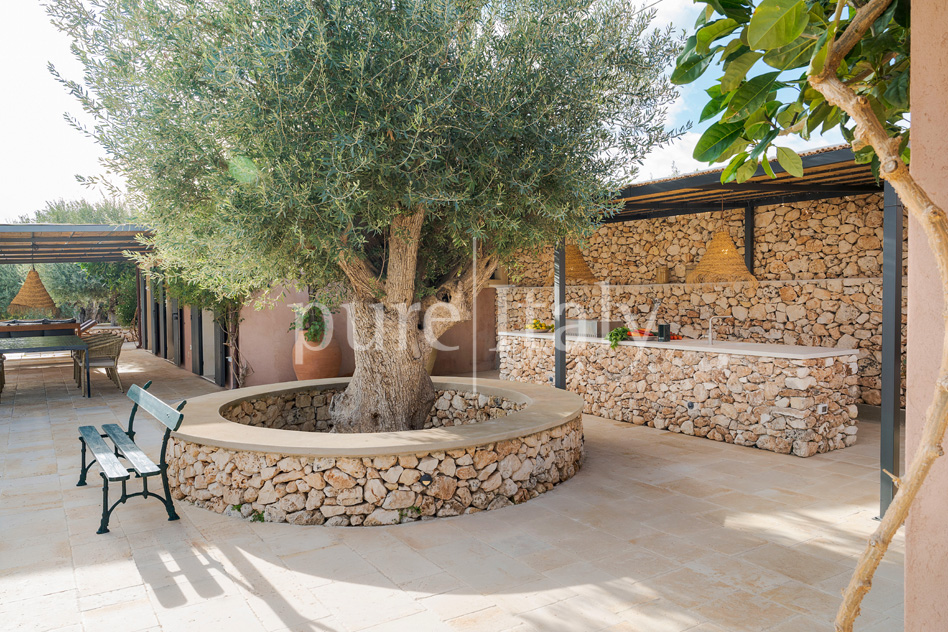 Zigulì ist eine exklusive Villa mit Swimmingpool in ruhiger und sonniger Lage in der Nähe von Noto. Die Villa liegt in einer bezaubernden ländlichen Umgebung mit Olivenbäumen, Zitrusbäumen und charakteristischen Trockensteinmauern und ist von großen Außenbereichen umgeben, in denen sich ein wunderschöner privater Swimmingpool und eine große Terrasse für Mahlzeiten im Freien befinden. Das Anwesen besteht aus einem Haupthaus, in dem sich Küche, Waschküche sowie zwei Doppelzimmer mit Bad mit Dusche befinden, und einem Nebenbau mit dem dritten Schlafzimmer, ebenfalls mit eigenem Bad, und stellt ein typisches architektonisches Beispiel für die Kultur und Tradition des Ortes dar, das durch eine kürzlich abgeschlossene sorgfältige Restaurierung den ursprünglichen Charme erhalten hat. Die einladenden Innen- und Außenbereiche verfügen über Klimaanlage, WLAN, 3 Fernseher, Waschmaschine und Trockner, Geschirrspüler, Elektroherd und Mikrowelle, Espresso- und amerikanische Kaffeemaschine, Weinkeller, Außendusche, Grill und Privatparkplatz. Zigulì ist ideal für einen erholsamen Urlaub im Kontakt mit der Natur und ein ausgezeichneter Ausgangspunkt, um das nahe gelegene historische Zentrum von Noto und die herrlichen Strände von Noto Marina, Calamosche und San Lorenzo bequem zu erreichen. In kurzer Zeit sind außerdem das Naturschutzgebiet Vendicari sowie Marzamemi, Syrakus, Scicli, Modica und Ragusa Ibla erreichbar.